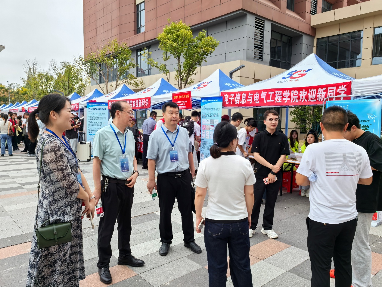 迎新现场报到日,人头攒动,气氛热烈而有序。在学院报到点,工作人员分工明确,信息核查、学籍核验、发放物资材料、领取军训物资等流程高效顺畅。身着统一服装的学生志愿者成为了校园里最亮丽的风景线,他们活跃在校门、报到处、宿舍楼等各个角落,热情地为新生搬运行李、指引道路、答疑解惑,用真诚的笑容和耐心的服务消除了新生初来乍到的陌生与不安,让他们第一时间感受到了学院大家庭的温暖与友爱。学校和学院领导也多次来到学院迎新报到处,了解现场报到情况,和新生及家长面对面交流。