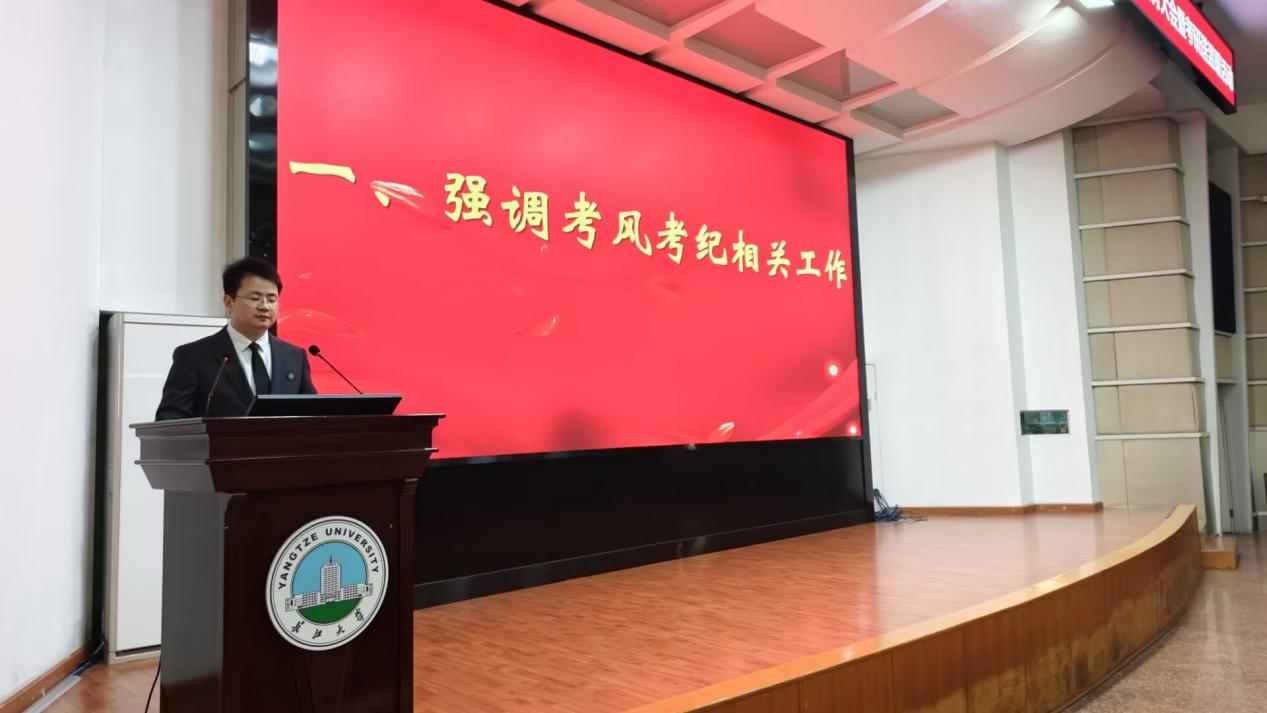 12月18日,学院精心组织开展诚信考试教育大会。会上,毕业年级辅导员沈马锐围绕考风考纪相关内容作了详细说明。他结合研究生考试的特点与要求,从考试用品携带、入场流程、考场分布、诚信应考等方面进行了细致讲解,并重点强调了考试期间可能遇到的各类注意事项。同时,他特别提醒同学们注意天气变化、妥善保管证件、合理安排时间,并鼓励大家保持良好心态,做到“考完一门放一门”,以饱满的精神状态迎接每一场考试。
