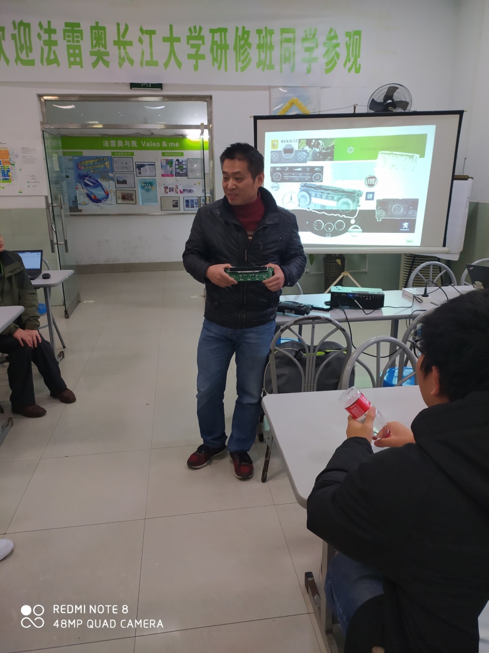 仪式开始,主持人向大家介绍了与会嘉宾,并表示了热烈地欢迎。随后,双方分别进行了精彩的发言。孙院长在揭牌仪式中提到,法雷奥公司是全球汽车零部件十强企业之一,为我院学生进行了为期一个月的汽车电子培训和研修,学生能力得到了大幅提高,希望在在今后的合作中,法雷奥公司成能够发挥企业优势,与电信学院共同培养人才,锻炼人才,选拔人才,打造一支优秀的人才队伍。随后,法雷奥与电信学院完成了共建教学实习基地挂牌仪式,并合影留念。挂牌仪式结束后,法雷奥负责人带领学生参观了研发及生产车间,并实际展示了空调在汽车上的应用,学生们表示收获颇多。