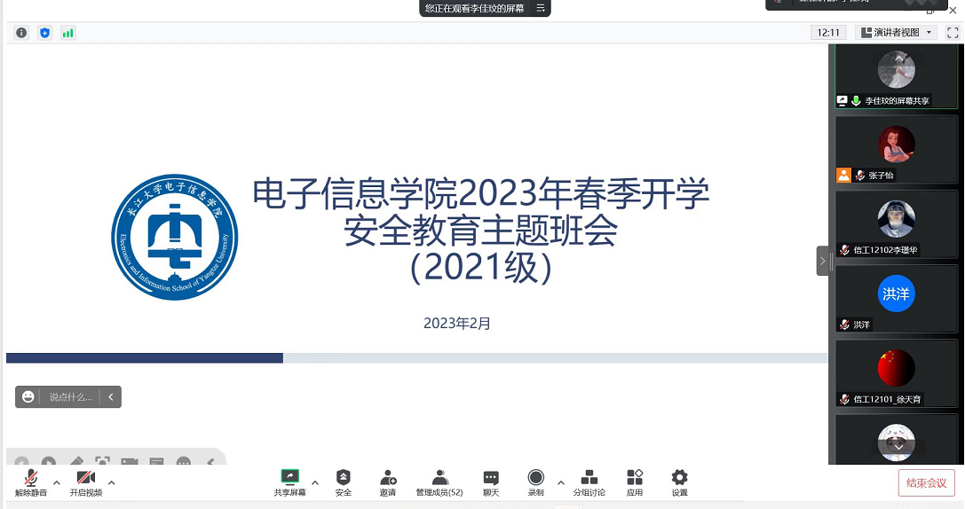 根据《关于做好春季学期开学学生返校工作准备工作的通知》文件的相关要求,为做好2023年春季开学工作,确保学生安全、有序返校,电子信息学院于2月1日至2月7日组织全体学生召开了春季安全返校教育主题班会。
