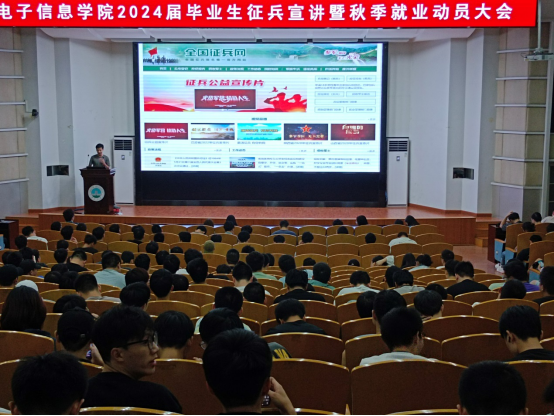 随后由王齐禄老师进行就业动员。王老师向2024届毕业生介绍了近几年学院的就业形势和今年学校的招聘情况。他说,近年来,电子信息和电气工程领域的就业形势呈现出较为乐观的趋势,对学院的学生来说是一大利好;同时,今年学校的招聘情况也相对较好,为毕业生提供了更多的就业机会。