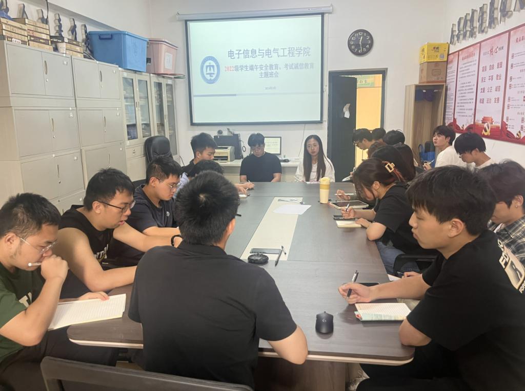 端午佳节临近,为进一步深化学生的安全意识,同时为严肃考风考纪,做好2024年6月份全国大学英语四、六级考试和期末考试考风考纪宣传教育工作, 我院于5月28日-6月3日组织各班召开安全教育和考风考纪诚信教育主题班会。