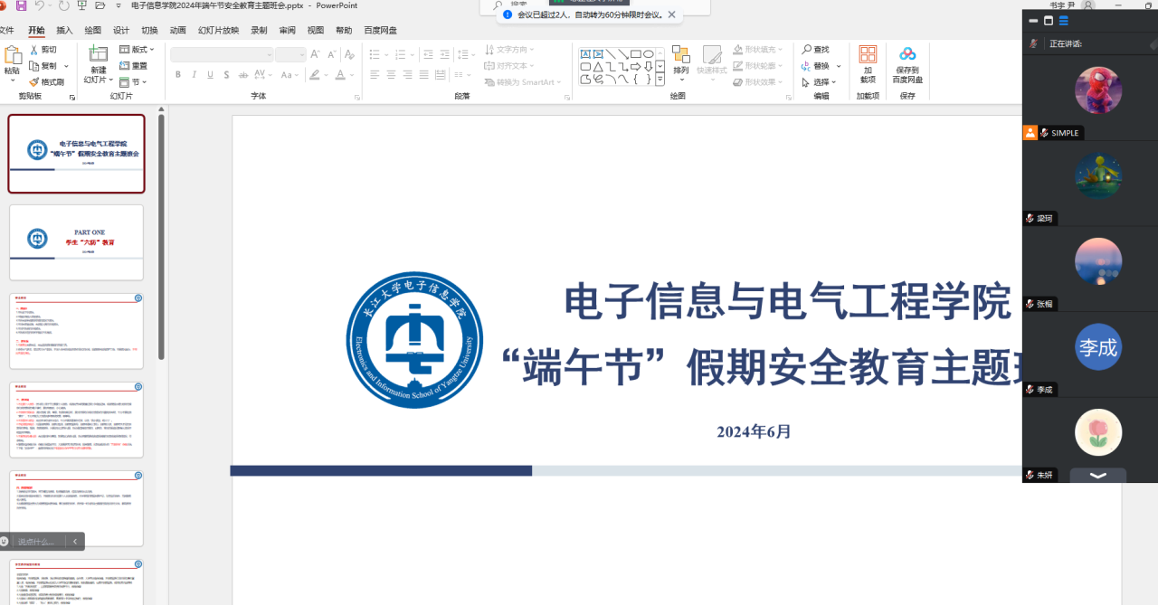 学院组织召开2024年研究生端午节安全教育班会