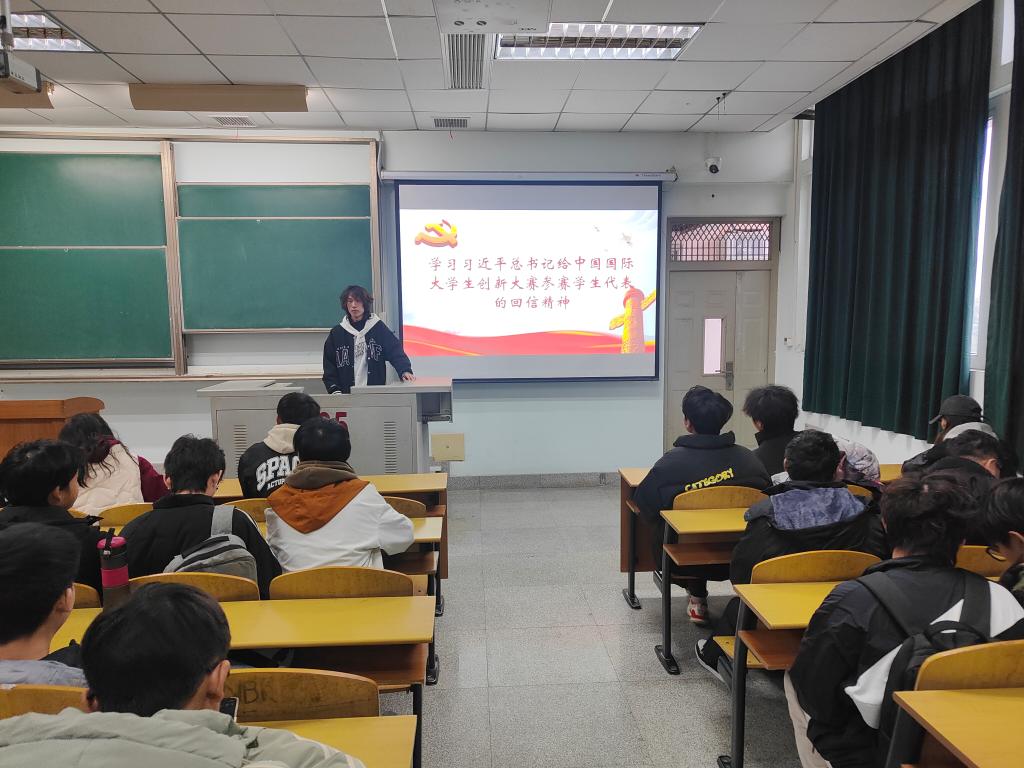 信工12302班于11月19日举行了一场别开生面的主题团会。主持人带领同学们学习了习近平总书记给中国国际大学生创新大赛参赛学生代表的回信。在回信中,习近平总书记对青年学生的创新精神和实践能力给予了高度评价,并鼓励大家继续发扬创新精神,为国家的科技进步和社会发展贡献力量。同学们纷纷表示,将积极响应习近平总书记的号召,将创新思维融入到日常学习和生活中,努力成为新时代的创新人才。