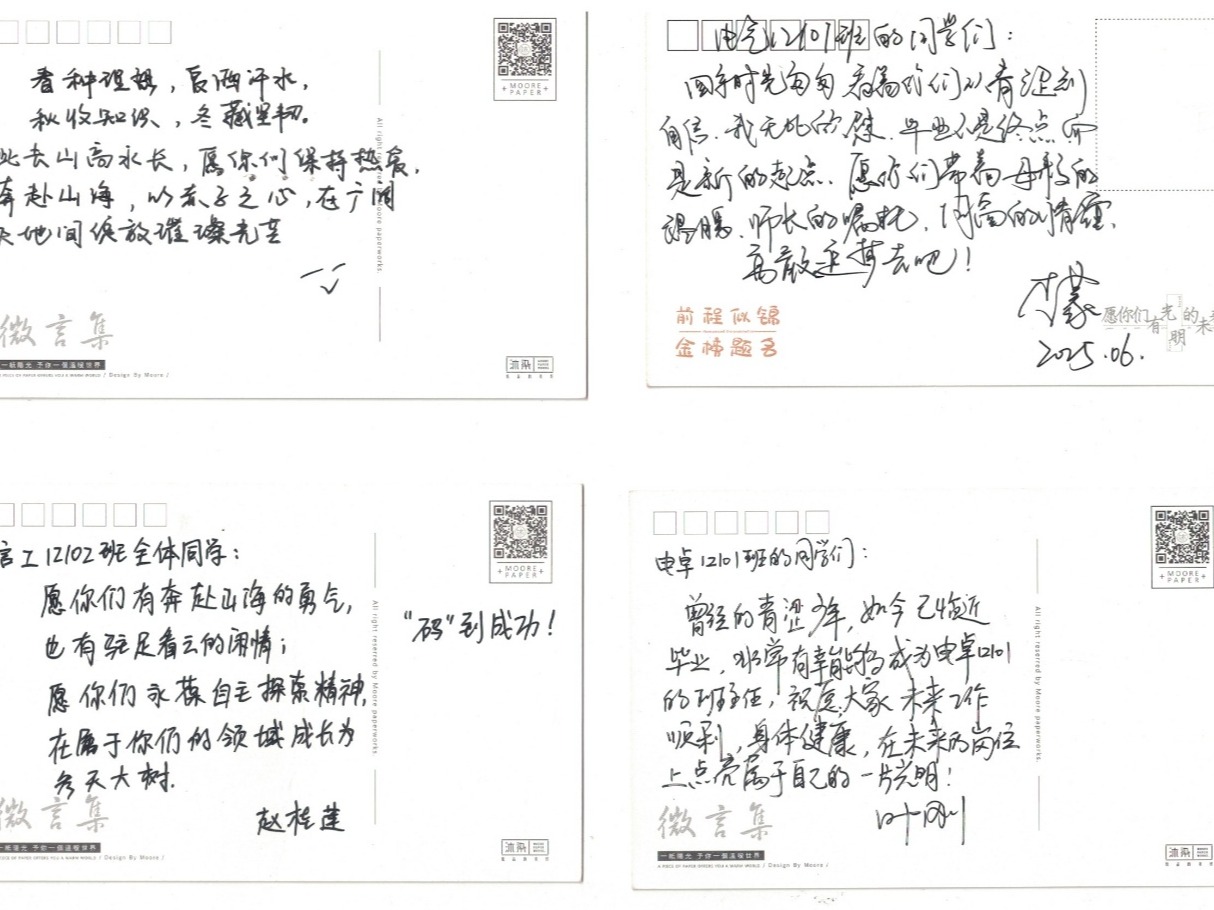 为深化“谈心育人”工作内涵,营造温馨和谐的毕业氛围,5月17日至30日,学院举办“纸短情长 拾忆青春”2025届毕业生书信传情心语活动。活动以书信为载体,通过师生、同窗间的双向寄语,传递感恩与祝福,共收到信件40余封、祝福明信片20多张,纸笺载深情,笔墨凝厚谊,为毕业生留下一份独特的青春记忆。