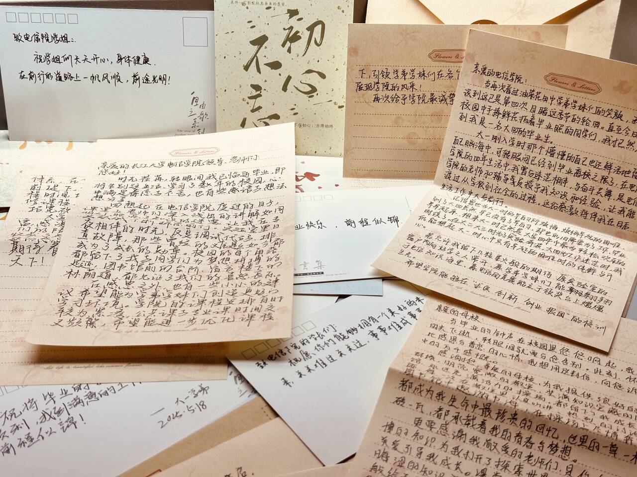 谈心育人,突显笔墨间的思政力量。学院党委副书记张晨露表示:“书信活动是‘谈心育人’的生动实践,师生在笔墨互动中实现了情感共鸣和价值引领。”一封书信,一份传承,在这场充满仪式感的告别中,师生以最质朴的文字诠释了教育的温度,为毕业生上了最后一堂“感恩思政课”。