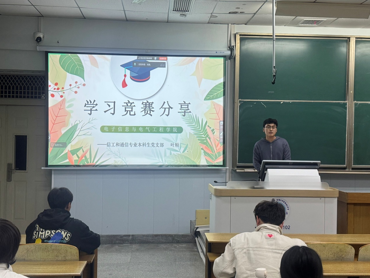 本次活动特别邀请到电气12201班栾志强同学与信工12202班叶顺同学担任主讲人。两位同学均在多项高水平学科竞赛中斩获佳绩并已成功推免为硕士研究生,具备丰富的实战经验。两位同学先后介绍了学校的竞赛体系、竞赛准备,分享了自己的项目经历和经验,并对现场的同学们提出了宝贵的经验。