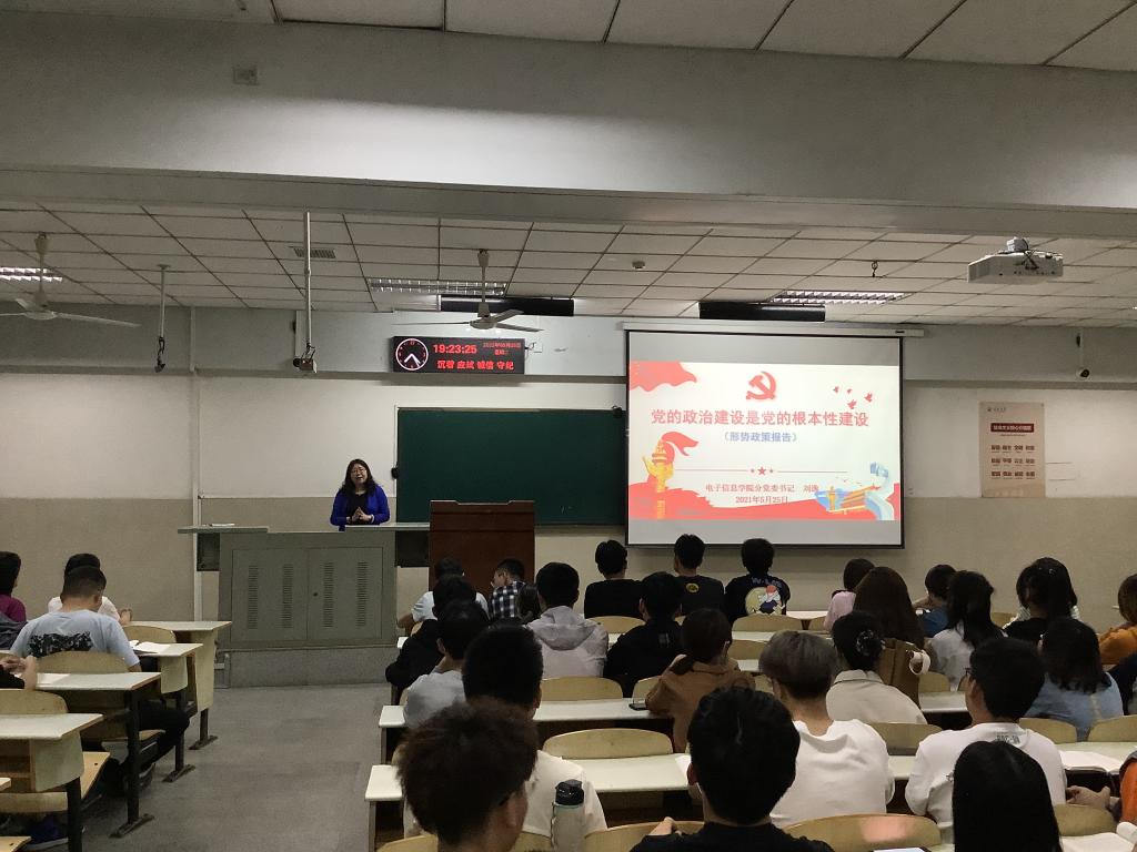 (通讯员 王齐禄)2021年5月25日,电子信息学院形势与政策报告会在12教102顺利举行,本次报告会主讲人由电信学院分党委书记刘逸担任,全体学生党员和入党积极分子参会。