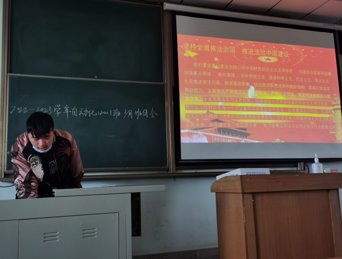 3月17日下午,自动化12001团支部团会在13教A504举行班团会。主持人带领大家学习习近平总书记在中国共产党第二十次全国代表大会上所作的报告和发表的重要讲话精神。回顾了过去五年和新时代的十年以来中国在政治,经济,文化,社会,生态五个方面做出的巨大变革,倡导大家争做担当民族复兴大任的时代新人,在决胜全面建成小康社会、开启全面建设社会主义现代化国家新征程中展现青春风采。
