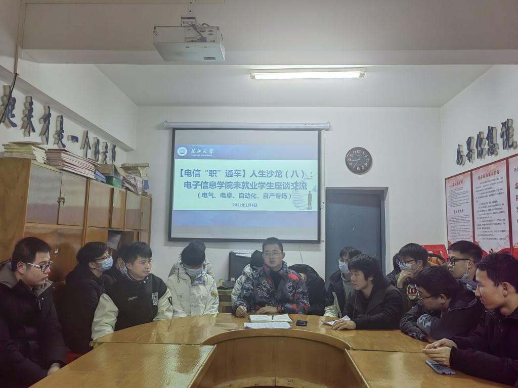 (通讯员 沈马锐)为激励毕业生充分就业与高质量就业,为学生提供针对性的建议。1月4日晚,学院于党员活动室为电气、自动化、电卓、自产专业部分未就业学生开展求职指导,现场为学生提供答疑解惑工作,年级辅导员王齐禄老师和学院就业专干沈马锐老师参与座谈。
