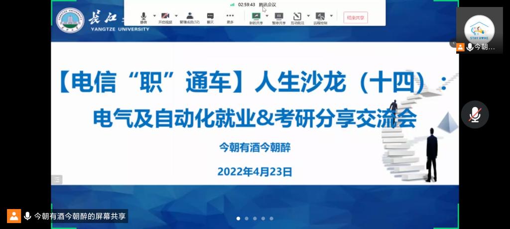 (通讯员 何达)努力拼搏,放飞考研梦想;激情飞扬,彰显青春魅力。为进一步加强同学们对研究生入学考试的认识,了解前沿的就业形势、增强考研斗志。4月23日晚,学院在线上举办了“电气及其自动化就业&考研分享交流会”。会议由2017级部分优秀毕业生主讲,2019级电气及自动化专业的同学们聆听本次会议。