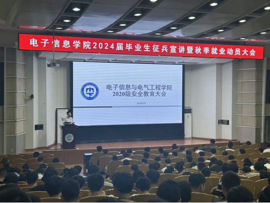 随后由王齐禄老师进行就业动员。王老师向2024届毕业生介绍了近几年学院的就业形势和今年学校的招聘情况。他说,近年来,电子信息和电气工程领域的就业形势呈现出较为乐观的趋势,对学院的学生来说是一大利好;同时,今年学校的招聘情况也相对较好,为毕业生提供了更多的就业机会。