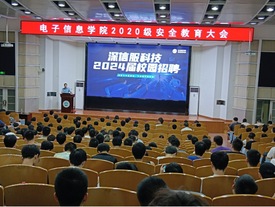首先,深信服科技公司的负责人现场进行了2024届校园招聘宣讲。负责人向同学们介绍了公司的核心价值观和企业文化,强调深信服科技注重员工发展和团队合作,着力为员工提供良好的职业发展机会和福利待遇,他十分期待同学们选择加入深信服科技施展才华。