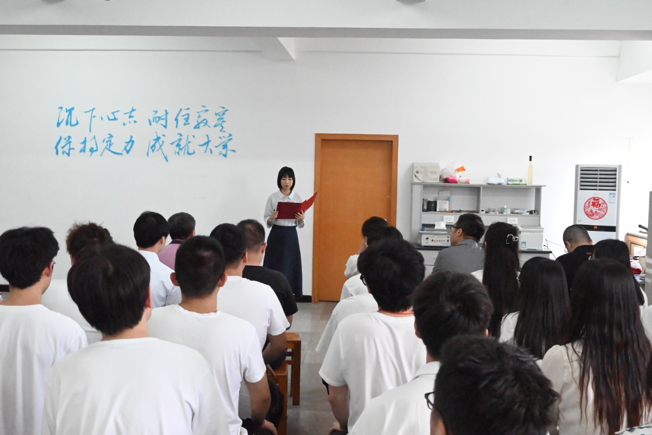 党支部书记周箩鱼同志进行表态发言。他就学校和学院对支部建设的关心和支持表示感谢,表示将以身作则,全力以赴抓好支部建设工作,强化科研育人氛围,进一步推动学院“一融双高”建设,以党建引领科研创新,助力学生成长成才,充分发挥党组织的战斗堡垒作用。
