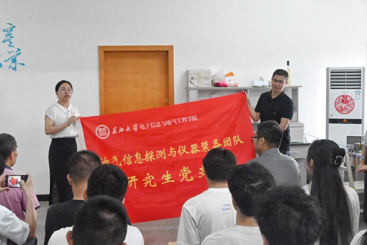 油气信息探测与仪器装备科研团队于2016年组建成立,2020年获批湖北省高等学校优秀中青年科技创新团队,至今已获批国家自科基金项目4项,发表高水平论文200多篇,获得湖北省科技进步二等奖等5项省部级奖励,承担油田企业横向项目30多项。团队研究生党支部的成立是学院积极响应学校号召,聚焦能源安全与科学研究,推动学生党建与学生成长成才深度融合,以高质量党建引领学生创新发展的重要举措。支部的建立将有力推动学院“一融双高”建设,推动党建与业务“双核”协进、相融相促。