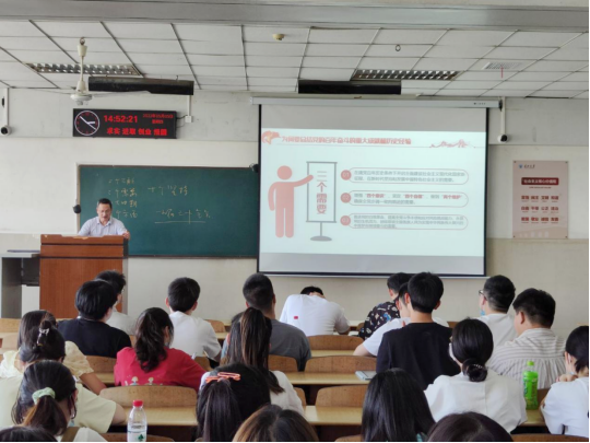 (通讯员 夏子阳)5月5日下午,电信学院在12教202举行学习贯彻党的十九届六中全会精神专题报告会。报告会由院分党委副书记郭启炜主讲,全体学生党员参加。