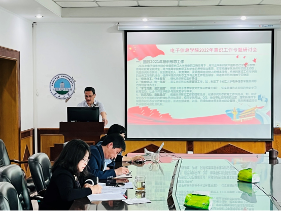 5月17日上午,电子信息学院分党委书记刘逸主持召开本月理论学习中心组(扩大)学习会,学院领导班子成员、各系部主任、党支部书记及机关全体教师参会。