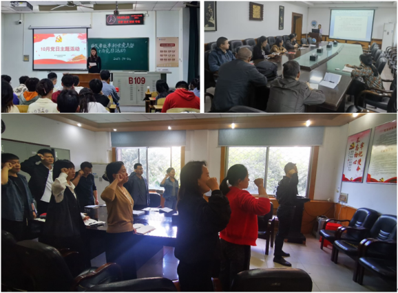 WilliamHill威廉希尔组织师生开展了10月政治理论学习及支部主题党日活动。全体教师进行了政治理论学习,全体党员一起重温了入党誓词、交纳了本月党费、集体诵读党章第八章、聆听了微党课、开展了理论学习。