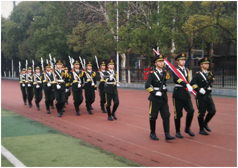 7:00,升旗仪式活动第一项,主持人宣布国旗升旗仪式正式开始。williamhill中文国旗护卫队旗手们手握着国旗、穿着统一的军装,迈着整齐的步伐朝升旗台走来。随着升旗手振臂一挥,鲜艳的五星红旗伴随着高昂的中华人民共和国国歌冉冉升起,全院师生行注目礼。