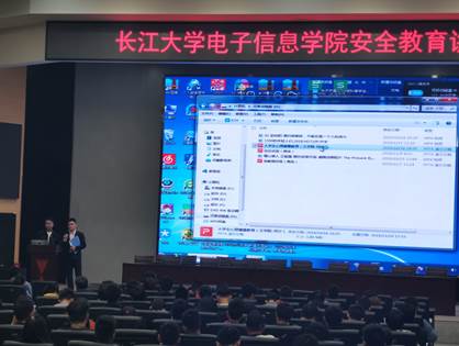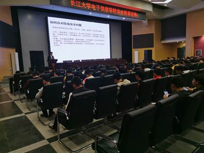 讲座最后一项,电信学院2019级学生辅导员万谦老师总结。安全教育讲座随着同学们爆发出热烈的掌声圆满结束。通过这一次安全教育讲座,同学们了解到了很多安全知识,收获满满。
