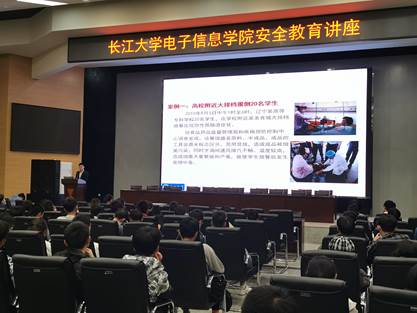 讲座第二项是电信学院辅导员万谦的讲话,万老师重点讲解了宿舍问题以及食品安全问题。他指出在周六周日学生不出宿舍产生大量的垃圾对宿舍环境的影响从而影响我们的健康,宿舍使用大功率的电器可能带来的危害,并以实例辽宁某高校大排档撂倒20名学生、94名学生倒于未炖熟的四季豆及上海商学院宿舍发生火灾几个实例来说明宿舍及食品安全问题的严重性。