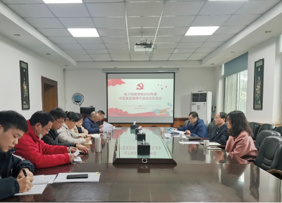 本网讯(通讯员 李蒙/文 沈媛媛/摄)2月24日上午,电子信息学院在十教205会议室召开2022年度中层党员领导干部民主生活会。校督导组组长、副校长周思柱,督导组成员王勇、段艳鸽莅临指导,学院全体处级干部参加会议。会议由院党委书记刘逸主持。