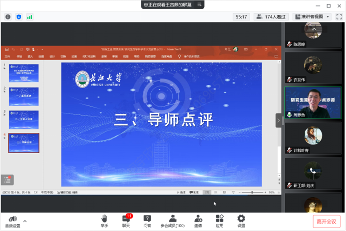 活动最后,电子信息学院周箩鱼老师、计算机科学学院叶青老师作现场点评提出相应建议。周箩鱼老师建议在进行机器学习研究时也不能完全放弃传统算法,要将图像和机械等方面传统的原理算法与深度学习相结合,传统原理与方法转换成损失函数运用在深度学习中会有新的增长点。叶青老师指出端到端的智能诊断方法具有实际应用研究意义的同时对数据要求较高,希望同学们理性看待交叉领域的学习并思考自己的研究领域是否需要深度学习的结合,建议同学们可以分享研究过程中的创新点以及如何寻找创新点。