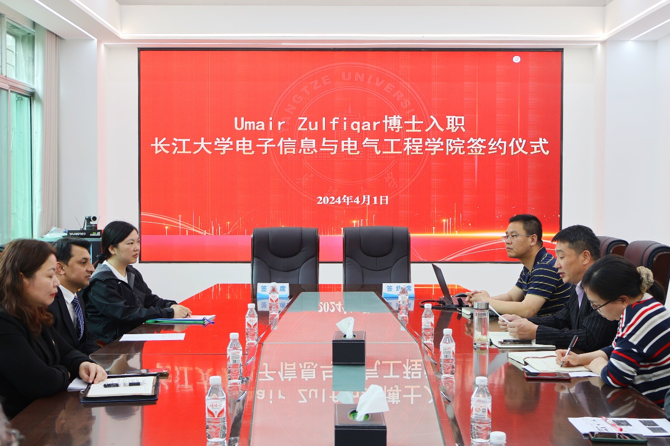 4月1日上午,学院在10教205会议室举行Umair Zulfiqar博士入职签约仪式,上海大学机电工程与自动化学院博士宋秋艳,学校人力资源部副部长王中梅,学院党政领导及电气系师生代表参加仪式。