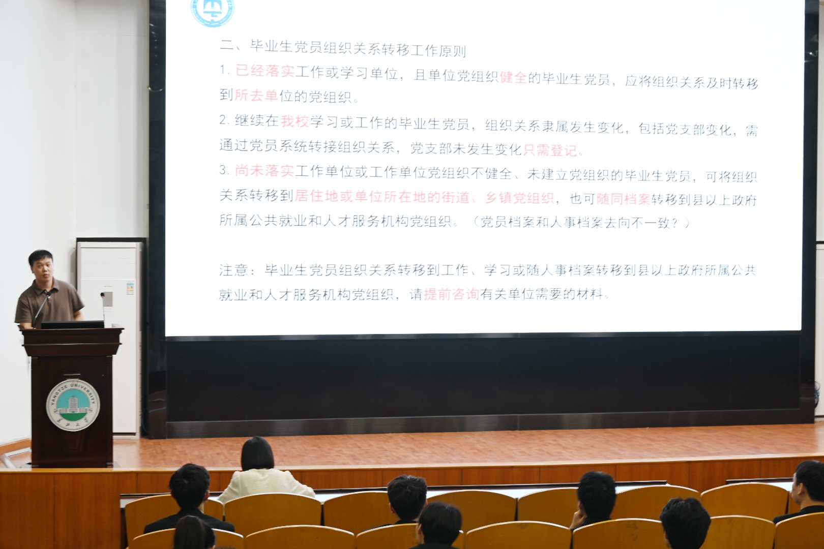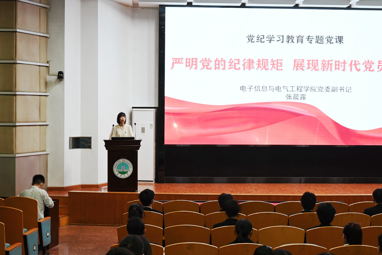 6月7日晚,学院党委组织召开毕业生党员教育大会。会上辅导员万谦带领全体党员重温了入党誓词,党委副书记张晨露讲授了党纪学习教育专题党课,要求党员同志们严明党的纪律规矩,展现新时代党员风貌;党建秘书李蒙对毕业生党员党组织关系转接作了强调。会上对毕业生党员们提出了殷切期望,寄语毕业生党员不忘初心,牢记使命,发扬长大精神,在更大的舞台上展现长大学子的风采。