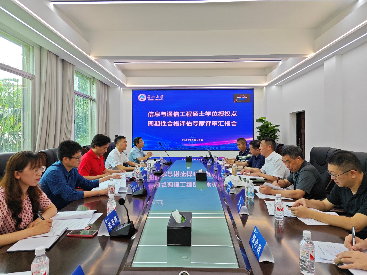 为贯彻落实国务院学位委员会、教育部制定的《学位授权点合格评估办法》,按照学校研究生院工作部署要求,6月26日,我院召开了信息与通信工程硕士学位授权点周期性合格评估专家评审会。会议邀请了休斯敦大学宋钢兵教授和陈杰夫副教授、西安电子科技大学邓军教授、中国地质大学(武汉)王雷敏教授、三峡大学文方青教授5位专家莅临评审指导。学校研究生院副院长袁海山一行及学院学术委员会全体成员以及教师代表、研究生代表共计30余人参加了评审会议。