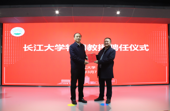 报告会后,举行了特聘教授聘任仪式,学校正式聘请杨茂君为williamhill中文特聘教授,williamhill中文党委副书记、副校长杜国锋为杨茂君专家颁发聘书,并合影留念。最后,罗明璋院长作学术报告的总结,他指出,中石油东方物探公司在物探装备技术领域的深厚造诣,与我院学科发展高度契合,将为学校相关学科的教学和科研工作提供重要支持,促进学校与企业在产学研方面的深度合作。