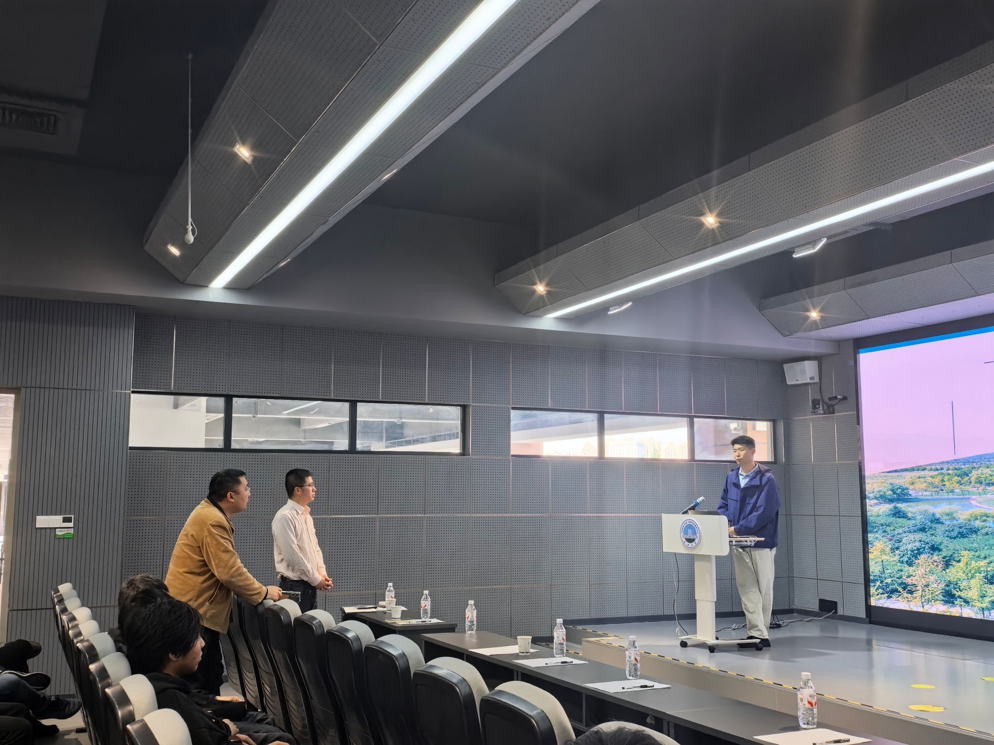在互动交流环节,学院师生与王博士围绕丢包处理、带宽占用优化、民用场景落地等问题展开深入探讨。