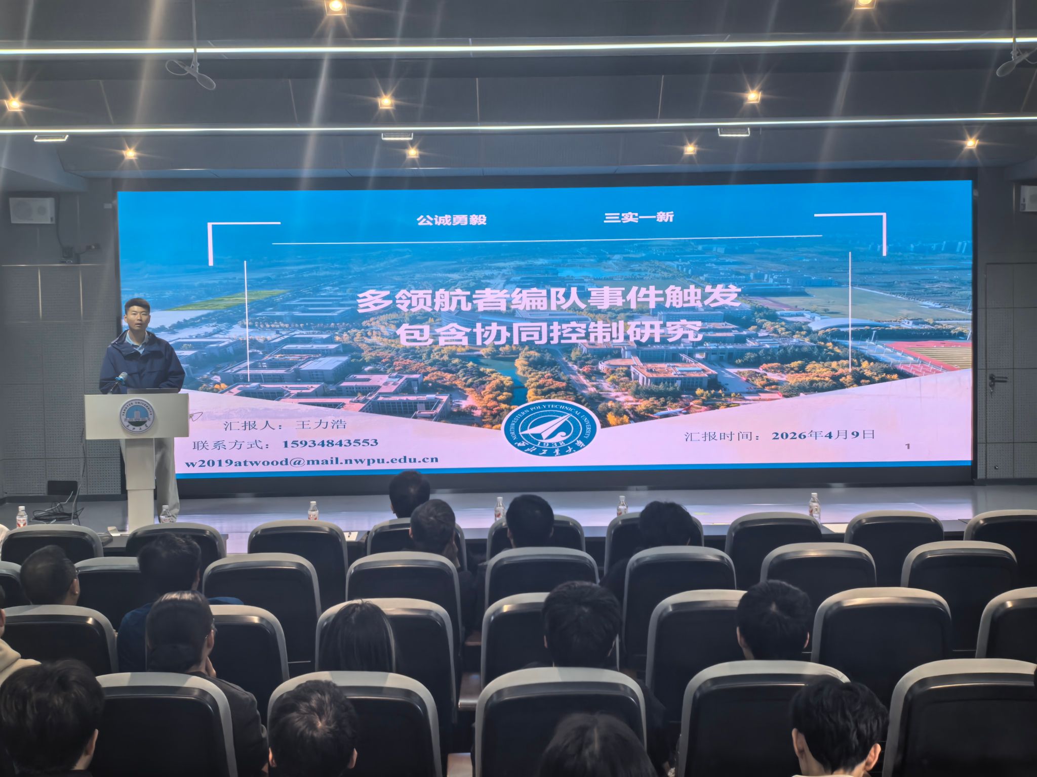 受魏勇院长邀请,2026年4月9日下午,西北工业大学自动化学院王力浩博士莅临williamhill中文,为学院师生带来题为《多领航者编队事件触发包含协同控制研究》的学术报告。王力浩博士深入剖析了无人机编队控制的核心技术、创新突破及行业应用前景,为低空经济领域的技术发展与产业融合注入新思考。